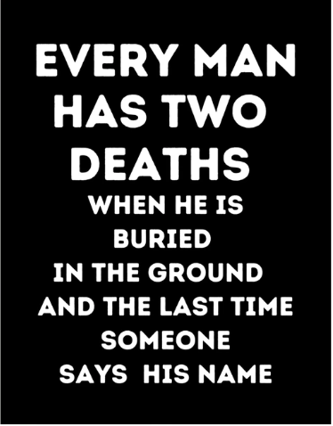 I recall a quote I think attributed to Hemingway, he said it best – Every man has two deaths, when he is buried in the ground and the last time someone says his name.